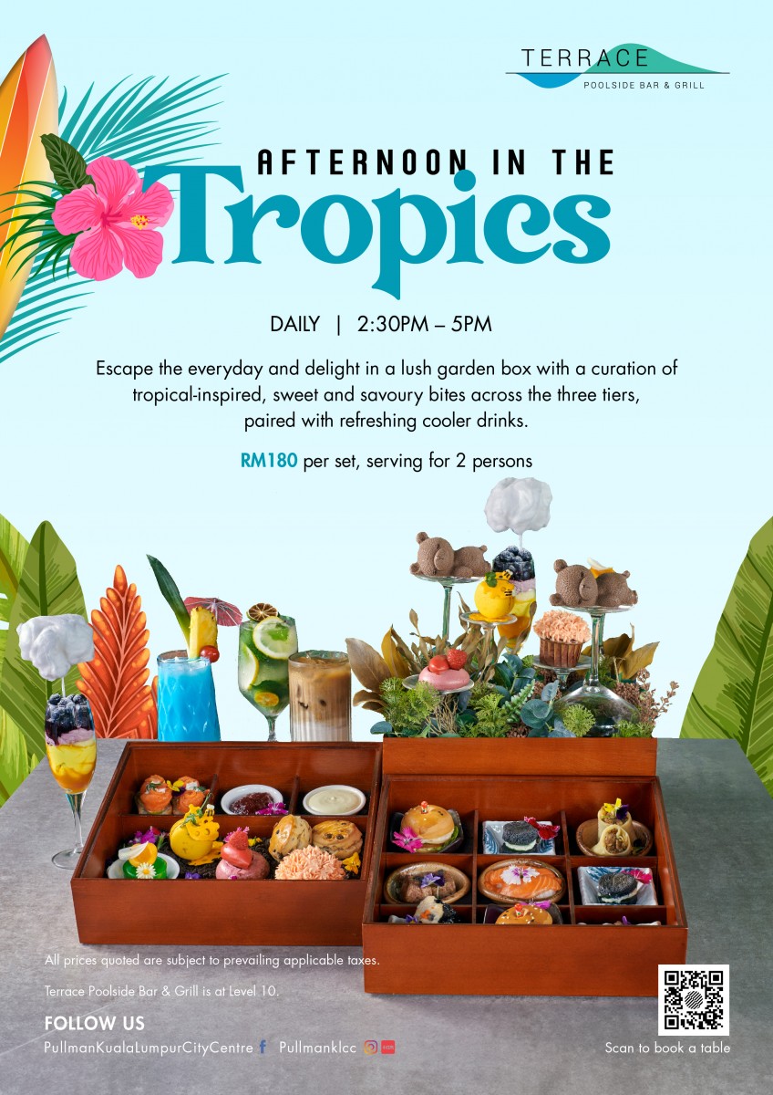 Take a break from the everyday and indulge in a lush garden box filled with tropical-inspired sweet and savoury treats, beautifully arranged across three tiers and paired with refreshing cooler beverages. View flyer here