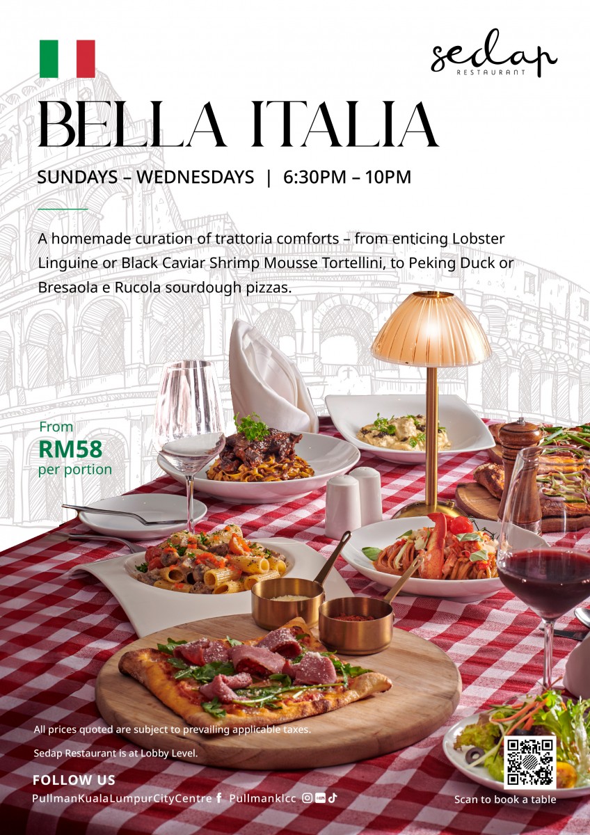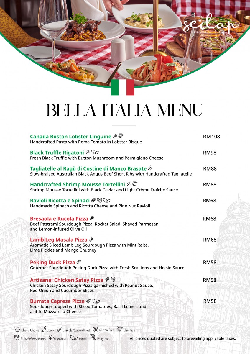 A curation of trattoria comforts β from enticing Boston Lobster Linguine and Black Caviar Shrimp Mousse Tortellini, to Peking Duck or Bresaola e Rucola sourdough pizzas. Buonissimo! View flyer here